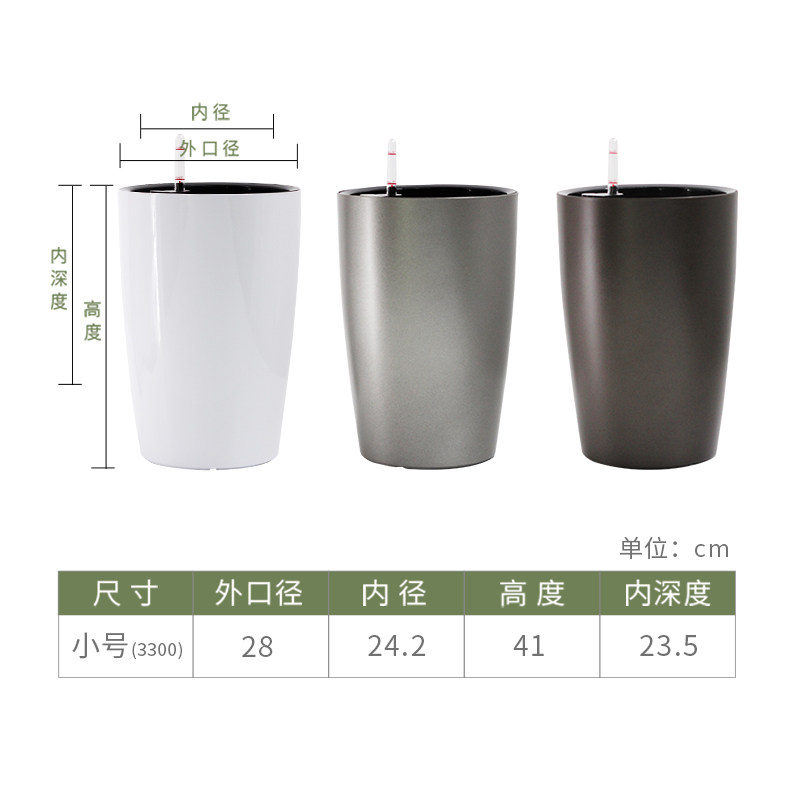 简约北欧创意仿陶瓷塑料自动吸水花盆懒人高圆形轻奢客厅花盆落地