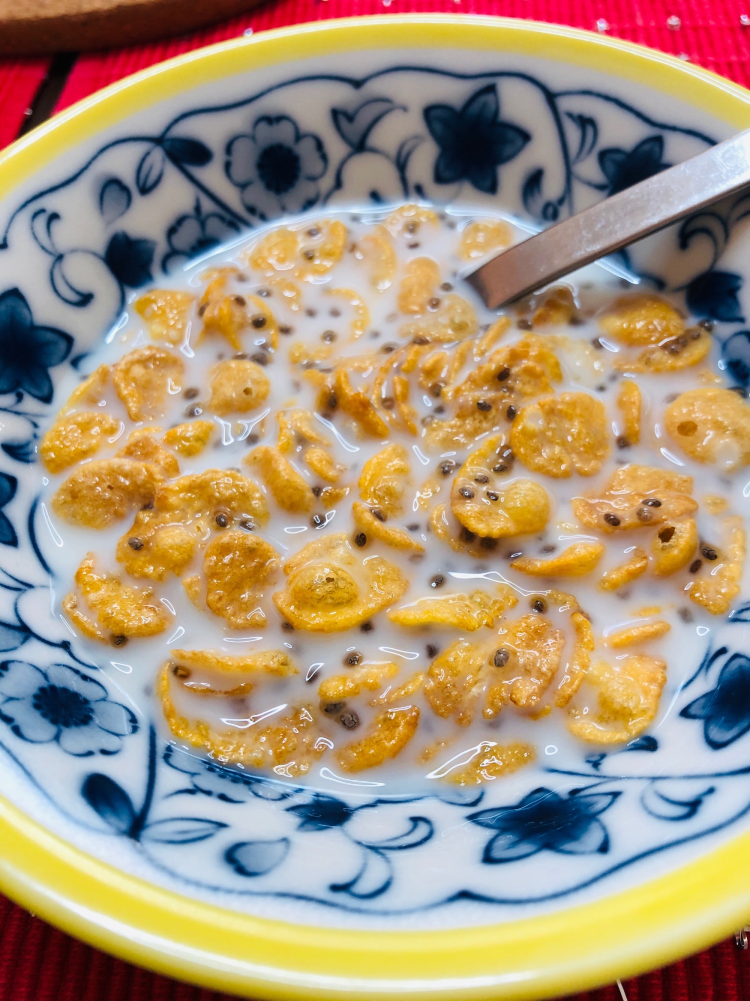 シリアル食 朝食 ブラウンシュガー コーンフレーク 牛乳