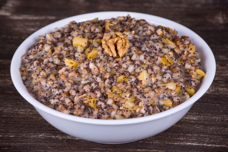クティアと赤いソースパン ウクライナ ベラルーシ ロシアの伝統的なクリスマス甘い食事 小麦 ケシ クルミ レーズン 蜂蜜からクリスマスクティア クローズアップ の写真素材 画像素材 Image